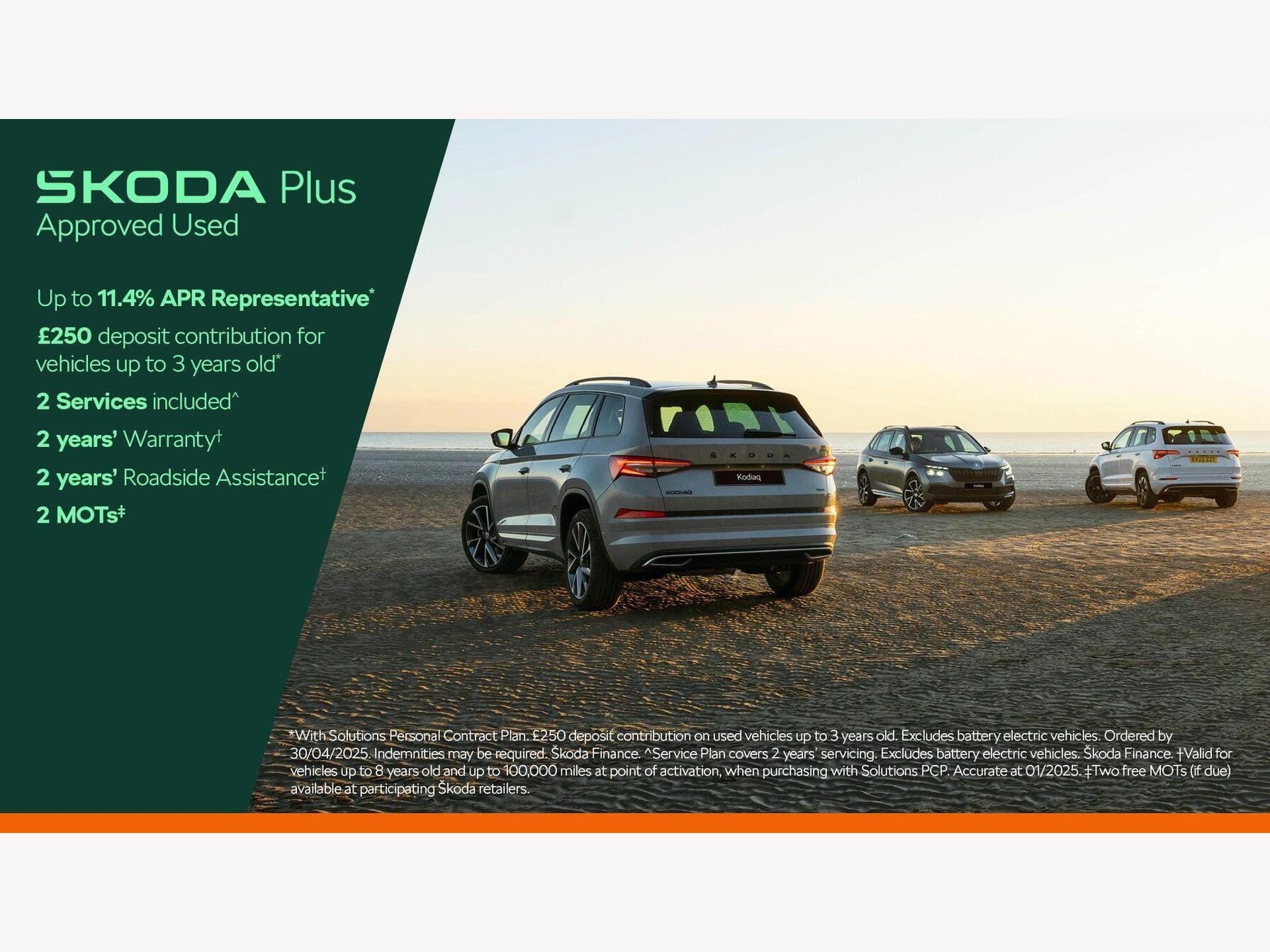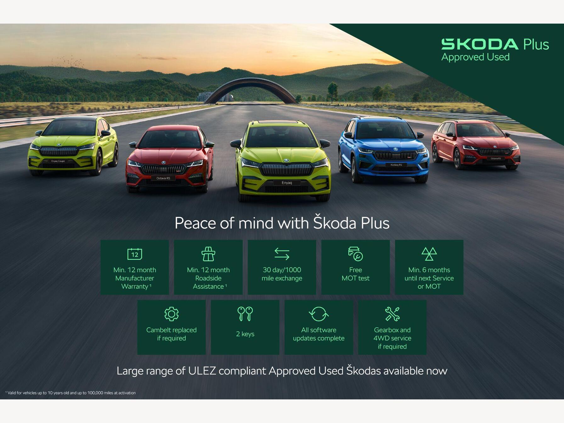 - All our used cars benefit from 12 months’ ŠKODA Roadside Assistance. If your car breaks down, one phone call will get you back on the move. Cover operates 24 hours a day, 365 days a year. Terms and conditions apply.
