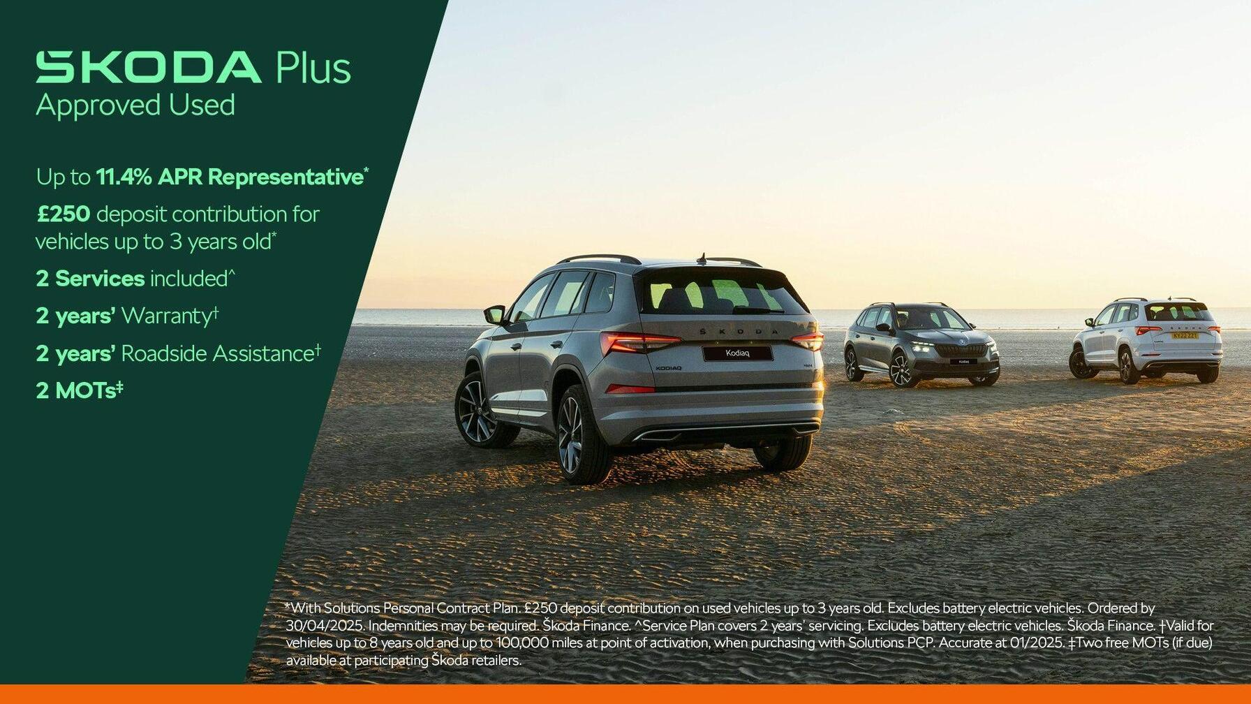 - All our used cars benefit from 12 months’ ŠKODA Roadside Assistance. If your car breaks down, one phone call will get you back on the move. Cover operates 24 hours a day, 365 days a year. Terms and conditions apply.