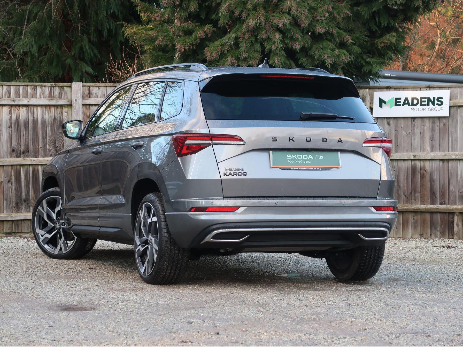**We are now entering the busiest period of the year, please contact us to arrange an appointment and avoid disappointment** This 2025 Skoda Karoq TSI SportLine Edition presents a superb opportunity, having been owned by just one careful keeper from new and carrying Skoda manufacturer approval. This stylish SUV is powered by an efficient 1.5 litre Euro 6 compliant petrol engine, offering a responsive drive. The SportLine Edition trim level ensures a premium feel, complemented by a host of desirable features. Inside, you'll find a 3 spoke leather sports multi-function steering wheel that is both heated and includes steering wheel heating for those colder mornings. The convenience of a light and rain sensor, coupled with an auto-dimming rear view mirror and automatic headlights, enhances your driving experience. Nationwide Delivery Available - Thinking of financing your next car? Why not use our 9.9% APR PCP Finance options. This offer is further enhanced by a £250 Finance Deposit Contribution and a Service Plan to include 2x Services for only £99! Manufacturerâs Warranty Until March 2028 Extras Over Standard Spec Inc: Graphite Grey Metallic Paint, Spare Wheel. Why to buy from Meadens: 14 Day Money Back Guarantee | Official SKODA Warranty â Can be used at any SKODA Dealer | Top Level AA Roadside Assistance | MOT and Serviced (where required) | Part Exchange Welcome | HPI Clear | 2 Keys Minimum | Nationwide Delivery Available | Prices Checked Daily - Ensures the most competitive prices | Personalised Video Walkaround | No Additional Fees â What you see is what you pay. If you have any questions regarding history, condition, or specification of this vehicle, please get in touch with a member of the sales team.