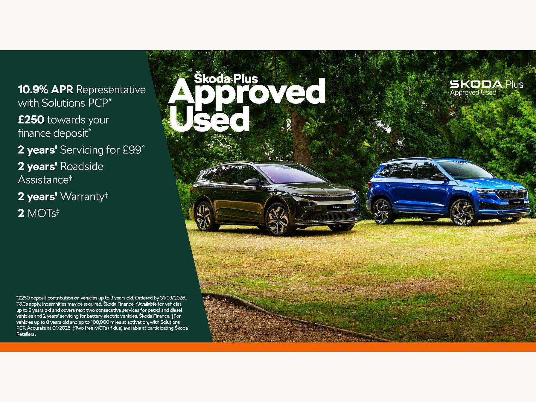 - All our used cars benefit from 12 months’ ŠKODA Roadside Assistance. If your car breaks down, one phone call will get you back on the move. Cover operates 24 hours a day, 365 days a year. Terms and conditions apply.